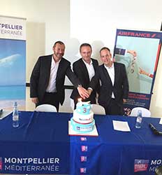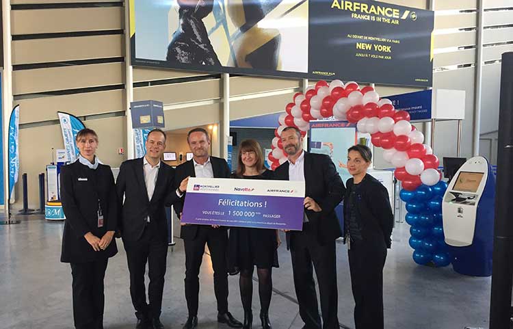 Tout récemment, à l'aéroport de Montpellier Méditerranée dans une ambiance joyeuse, le 1,5 millionième passager c'est vu offrir un beau cadeau : 2 billets d'avion pour la destination de son choix par la compagnie Air France-KLM ! Voilà pour l'ambiance. Il y a 3 ans, le pari n'était pas gagné lors du lancement de la ligne « La Navette Air France » au départ de Montpellier. Aujourd'hui le succès est au rendez-vous grâce à l'attractivité du territoire et une qualité de service de tous les acteurs : compagnie et aéroport. Et les perspectives sont tracées. Emmanuel Brehmer, Président du Directoire de l'aéroport Montpellier-Méditerranée, entouré de Sébastien Guyot, Directeur des Ventes Entreprises et Agences, Marché France, Air France-KLM, et de Bertrand Visconti, Directeur des Ventes Région Méditerranée annoncent le développement de ce partenariat au service de la clientèle « Affaires » et aussi « Loisirs » pour la satisfaction du plus grand nombre. Ces hubs à Paris-Orly, Paris-Charles de Gaulle et Amsterdam offrent de multiples possibilités de correspondances où chacun peut planifier ses voyages vers Les Antilles et La Réunion et plus de 140 destinations long et moyen-courriers au départ de Montpellier. Sur la période 2019 – 2020 le groupe Air France-KLM augmente son offre et propose près de 600 000 siè