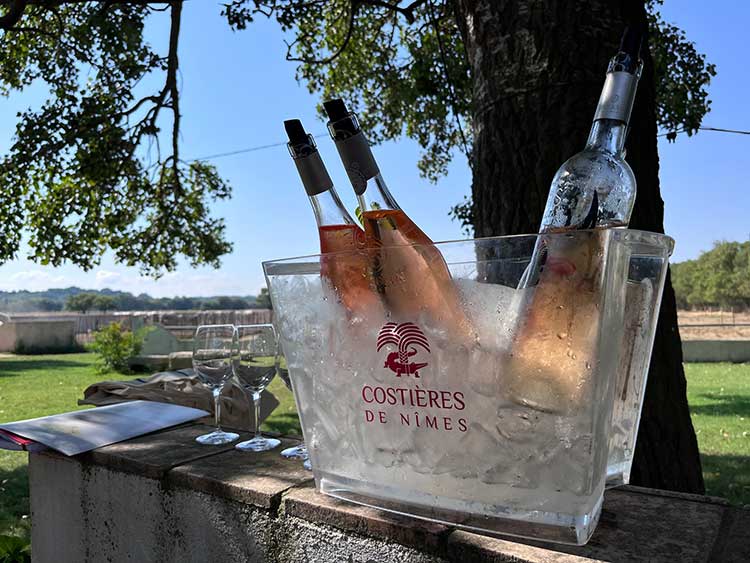 C'est une terre gorgée de soleil, un terroir marqué par l'eau. L'AOP Costières de Nîmes fait partie du vignoble de la Vallée du Rhône avec une production à 50 % sur des vins rouges, 40 % sur des rosés et 10 % sur des blancs. Voilà la singularité de cette AOP aux 3 couleurs où les viticulteurs et vignerons exercent leur savoir-faire avec passion. Une production labellisée en mode Bio et HVE ( Haute Valeur Environnementale) sur 70 % de l'appellation. Le millésime 2022 annonce une grande qualité avec une belle fraîcheur sur les blancs et rosés, et des rouges toujours marqués par une jolie couleur, des arômes et tanins très intéressants.