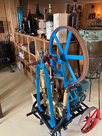 exploitant désormais dix hectares comme viticulteur. Et ainsi va durant plusieurs années son rythme de travail avec un complément d''activité de petit négoce de «bois de chauffage» et d'entretien d'espaces verts. Les années passent, jusqu'en 2020 où pendant le confinement, il s'occupe en surfant sur le «Net». Epicurien, amateur de vins et de liqueurs anciennes, l'univers des vieilles bouteilles à sa préférence... Enfin la liberté retrouvée, la vie de reprend son cours ! Rencontres, échanges entre copains, contacts en «visio» , Laurent développe alors sa passion pour les vieilles liqueurs et l'histoire du vieux matériel de cave : petites pompes, pèse-barrique... Comme une évidence, dans sa résidence il crée en 2022 «Le Garage à vin» ! Aujourd'hui, il est à la fois vendeur et collectionneur de vieilles liqueurs françaises dénichées dans le monde discret des collectionneurs et des ventes aux enchères ici et là. Chartreuse, Bénédictine, Liqueur de la vieille Cure de Cénon … il présente ses petites collections aux «pièces» rares dans son joli espace rustique, sans oublier de belles références de vins régionaux. Sur de petits fûts, ses plus vieilles bouteilles, une «Fine Faugères» de 1895 et un Armagnac «Larressingle» de 1893 démontrent l'étendue de la passion de Laurent qui veille sur son précieux «Garage à vin» ! A voir avec gourmandise, à consommer avec modération.
