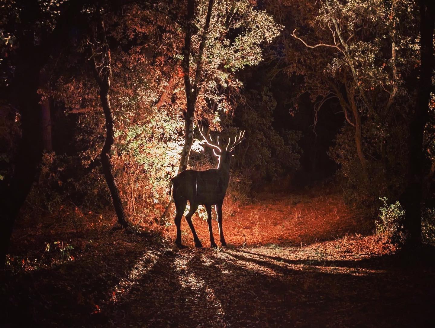 pour un spectacle unique. Cette déambulation nocturne illuminée en extérieur révèle les secrets et mystères de l'ancienne réserve médiévale grâce à des effets spéciaux sonores et visuels. Dès la tombée de la nuit, le spectacle vous transporte dans un univers magique inoubliable. En famille ou entre amis vous découvrez les légendes des bêtes forestières de Pézenas, contées de façon poétique dans un cadre naturel sublimé par la scénographie et l'ambiance musicale. Equipés d'un audioguide synchronisé, le spectacle se déroule sur une heure dans la forêt, le long de la muraille du domaine. Sur le sentier de visite de deux kilomètres, il est agréable de prendre son temps pour savourer cet instant dans ce lieu chargé d'histoire. Pour une soirée comblée, il est possible de dîner face au soleil couchant en réservant un panier « pique-nique » composé de produits locaux sélectionnés avec soins.