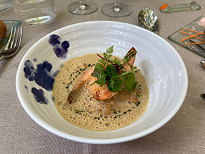 Notons ! Un risotto d'épeautre de chez «Nim'Grain » aux girolles, relevé au parmesan, gambas snackées et cappucino de girolles, est servi avec le blanc «Trassegum» (2023) du Château d'Or et de Gueules. Le rouge «Equinoxe» (2020) du Château Mourgues du Grès est parfait sur le canard de la ferme Gubernat en trois versions : le filet rôti, le cou farci et la cuisse confite en effiloché, relevés au foie gras poêlé accompagné d'un demi-panais fondant puis grillé, et sauce Albufera.