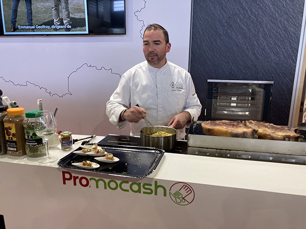 Il est une des références en Occitanie dans l'univers de la cuisine gastronomique, passé par la Maison Bocuse, Julien Dubroc Chef cuisinier est aussi associé au restaurant «Les Docks du GR» à Saint-Martin-de-Londres sur le territoire du Pic Saint-Loup. Terredédiéeàlavigne où l'environnement embaume d'essences méditerranéennes, oliviers, chênes verts, arbousiers, thym, laurier, romarin, cistes... une terre d'histoire et de légende inspiratrice d'une cuisine créative. A l'occasion du récent salon SIPRHO à Montpellier, l'enseigne Promocash spécialisée dans le commerce de proximité pour les professionnels de la restauration en produits frais, surgelés et autres, a fait appel au talentueux chef pour régaler sur son stand ses partenaires et visiteurs. Recettes de noix de Saint Jacques, de homard, de thon, belles pièces de viande, assiettes de charcuterie, fromages et desserts ont emballé les papilles des «palais» avertis. Avec modération, les vins de la cave Fontésole ont accompagné les créations culinaires.