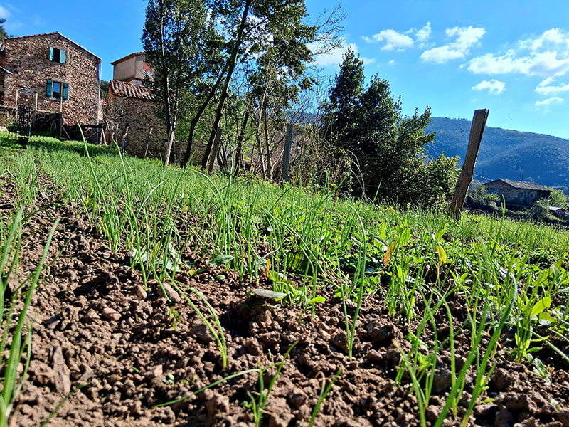Telle une étincelle, la décision fût prise de relancer la production de l'oignon ! En 2020 déjà familier aux travaux agricoles, le jeune néo-paysan oriente sa production de plants et d'oignons en agriculture biologique (AB). Il y voit la nécessité de manger «bon et mieux» tout en valorisant un foncier délaissé pour désormais une agriculture de qualité et vivrière en circuit court. Aujourd'hui sa production s'étend sur la moindre petite parcelle de terre travaillée en étagères appelée «Faïsses» en Occitan.