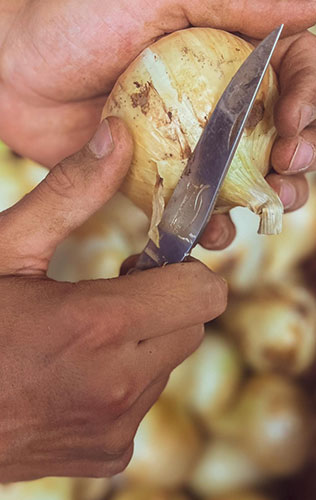 Attaché à son histoire familiale liée à celle d'un terroir, Guilhem s'applique à relancer la culture de cet oignon doux, de forme plate à la couleur rosée. Installé dans le hameau de Cazillac, Guilhem distribue le légume à bulbe dans 3 boutiques de Montpellier et quelques épiceries aux alentours. Une pépite gustative qui fait déjà échos auprès de chefs cuisiniers pour exalter le palais de fins gourmets.